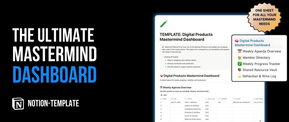 In the last 3 years I've used Notion for a lot of things: Process Docs, Daily Sprints, Client Proposals, but one of the most significant ways I've used it recently is to facilitate a Mastermind Group! It turns out that a lot of people are interested in doing the same thing. No overwhelming systems. This template will take care of the whole setup for you with one powerful page.